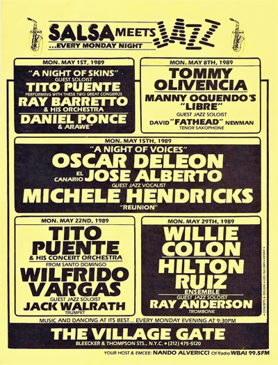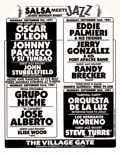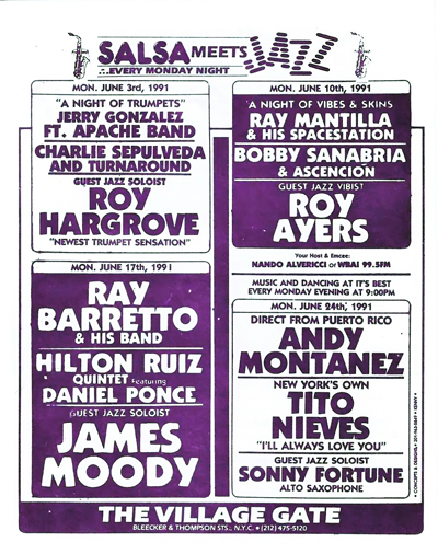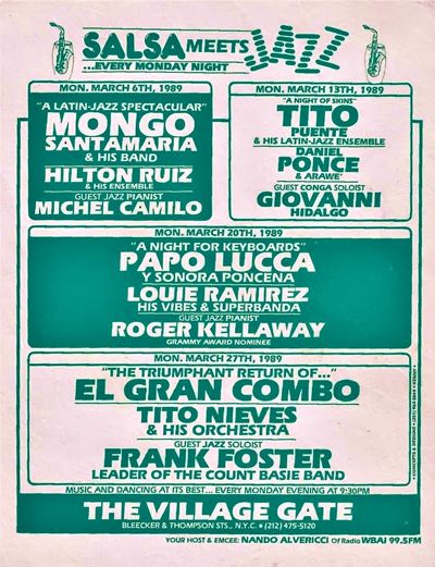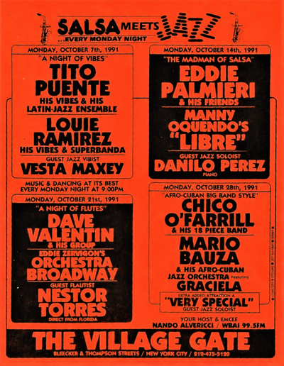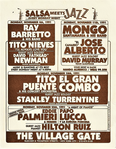 Retracing the official birth of "Salsa Meets Jazz at the Village Gate" proved to be an interesting endeavor. First, to get a better idea of how a few good answers can invite even more questions, I would suggest reading the research document contributed to this module by Dr. José E. Cruz.
