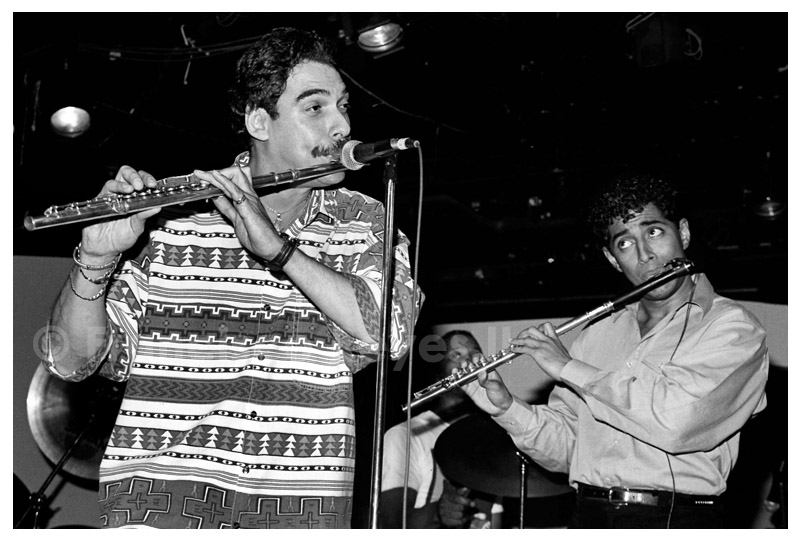 Given the resources available at the time, to achieve the "live-music, NYC club experience," a direct patch from the house mixer board was fed to one channel of a SONY TCD-5M Audio Cassette Recorder, and the other channel was fed by a Sennheiser PA microphone dangling from the sound booth, just above the rear of the main audience area, directly across from the stage. Maxell metal-alloy tape was used for the recordings which probably accounts for their lack of degradation after sixteen years - the time elapsed before their conversion - and after thirty years, the most recent remix of the excerpts and additions. The results of the "blend" varied from disastrous to exciting with or without post. The clips featured here represent those instances when technology and artistic expression came together to form what I regard to be those vindicating moments about this project. For the purposes of this archive, the excerpts were remixed using Audacity (an open-source audio editing application) and then exported to .mp3 & .ogg format. The Village Gate series was a defining period in the history of Latin Music in New York City; a period, in my opinion, comparable to that of the Palladium Era. My hope is that this "online" tribute will become a permanent archive or part of a larger collection celebrating Afro-Cuban rhythms, Jazz music, the Puerto Rican / Nuyorican community in New York, and Latino Music as a whole. |